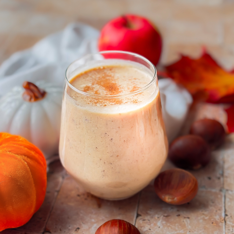 Ten koktajl jest delikatnie korzenny, słodki od daktyli i banana, a dzięki serkowi wiejskiemu ma gęstą, aksamitną konsystencję.