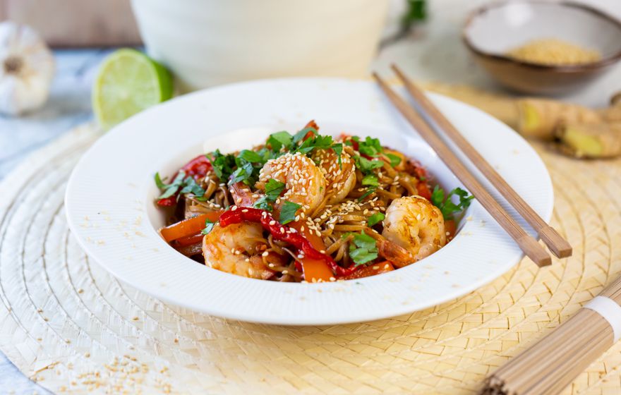 Makaron z krewetkami z ostrym sosie chilli