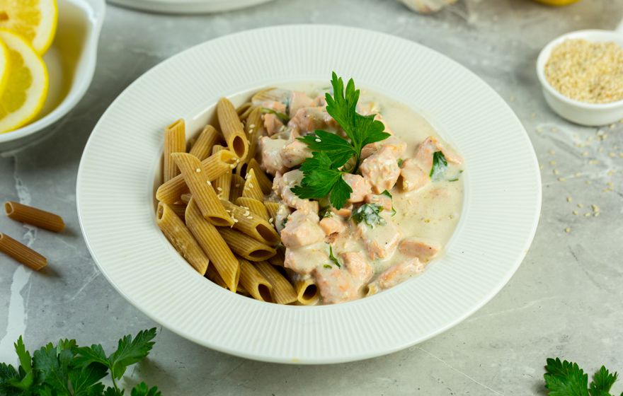 Makaron w sosie śmietanowym z łososiem