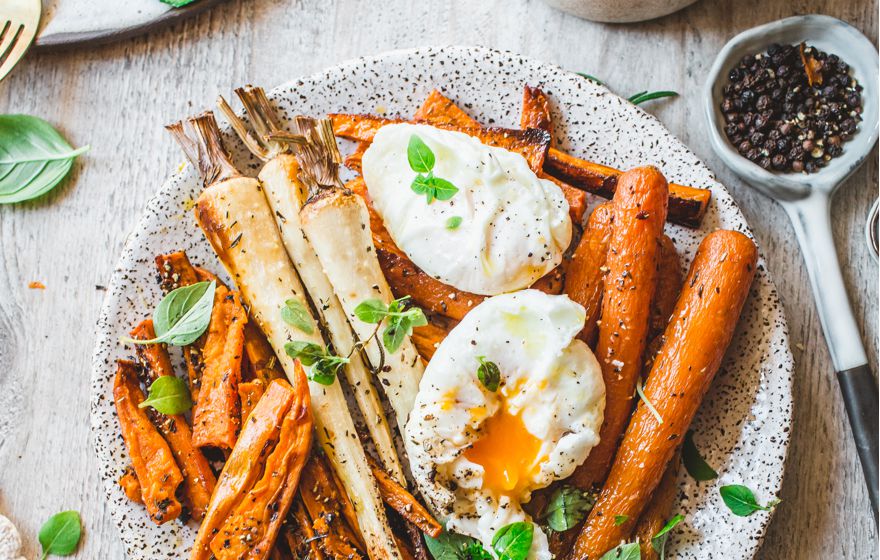 Warzywa z jajkiem poche.
