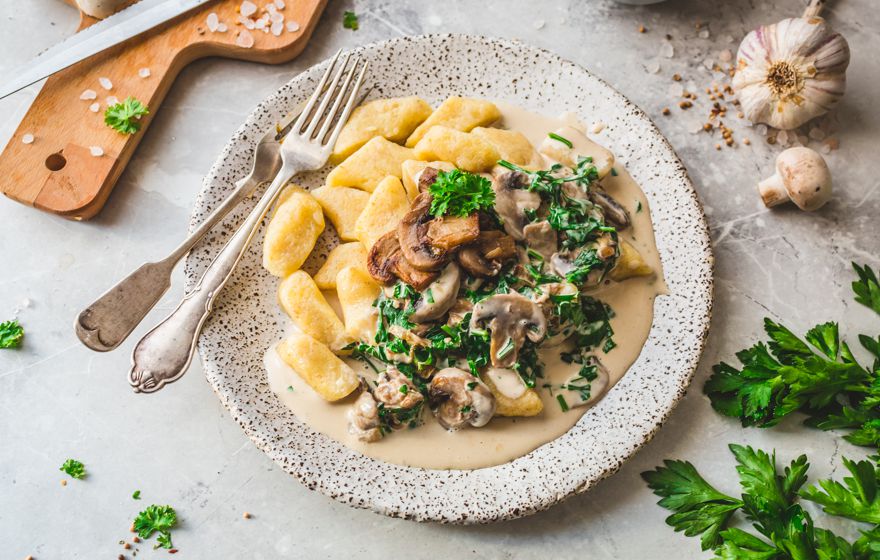 Kopytka w wyśmienitym sosie pieczarkowym