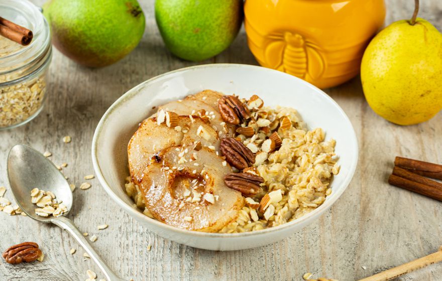 Owsianka z karmelizowaną gruszką