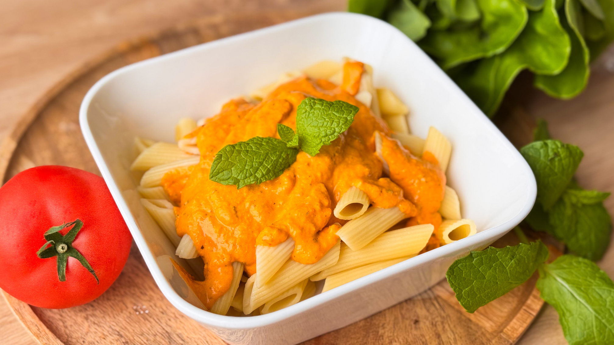 Makaron z kremowym sosem z pieczonych warzyw i fety