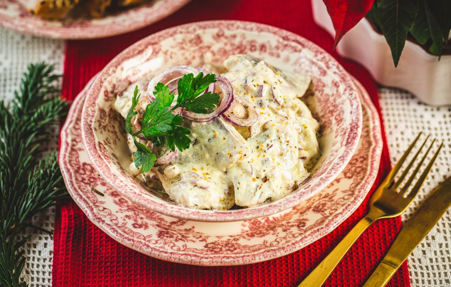 Sałatka śledziowa z czerwoną cebulą.